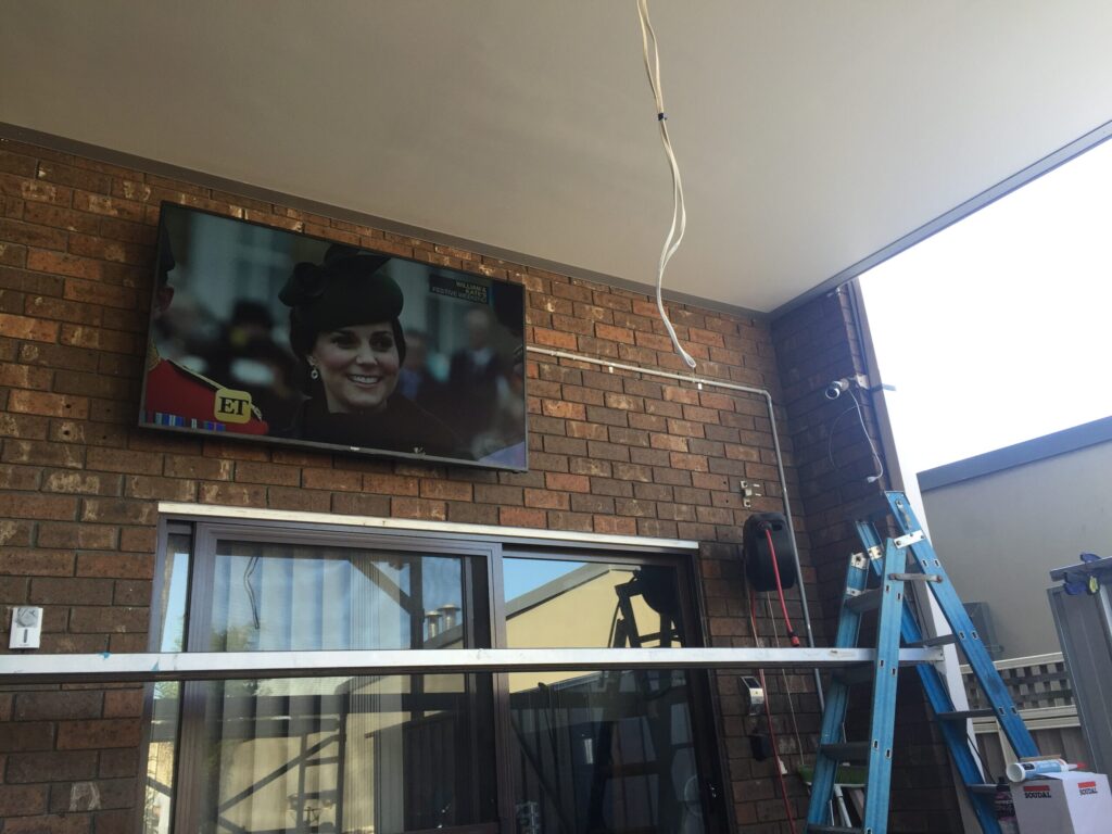 - Small gyprock install: fixed bracket, visible cables — a straightforward investment.